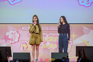 すべてのチケットを持っている方が入場され、さらに熱気に包まれる中、開始時刻をすぎると、会場が急に暗くなり、「Dear My Love」の映像が流れると、客席からは「キャー」という声や「LingOrm」、「OrmLing」とコールが響きました。すると……また、若干申し訳なさそうに司会者のお二人が登場されました。ファンのみんな、もっと声出せるんじゃない?ファンのみんなのサウンドチェックしよう!と会場を沸かせてくださり、LingさんとOrmさんを迎える準備を整えてくださいました。